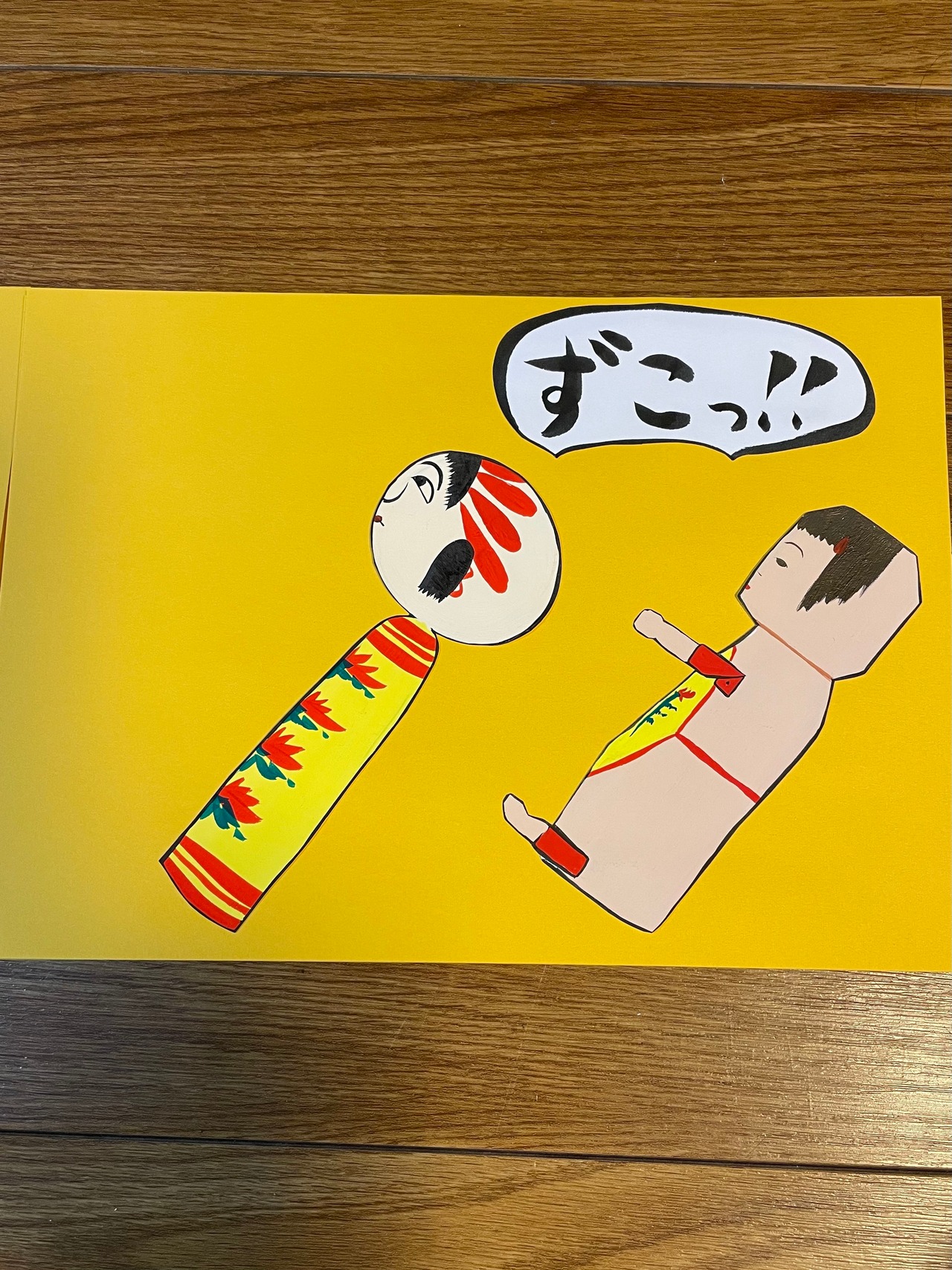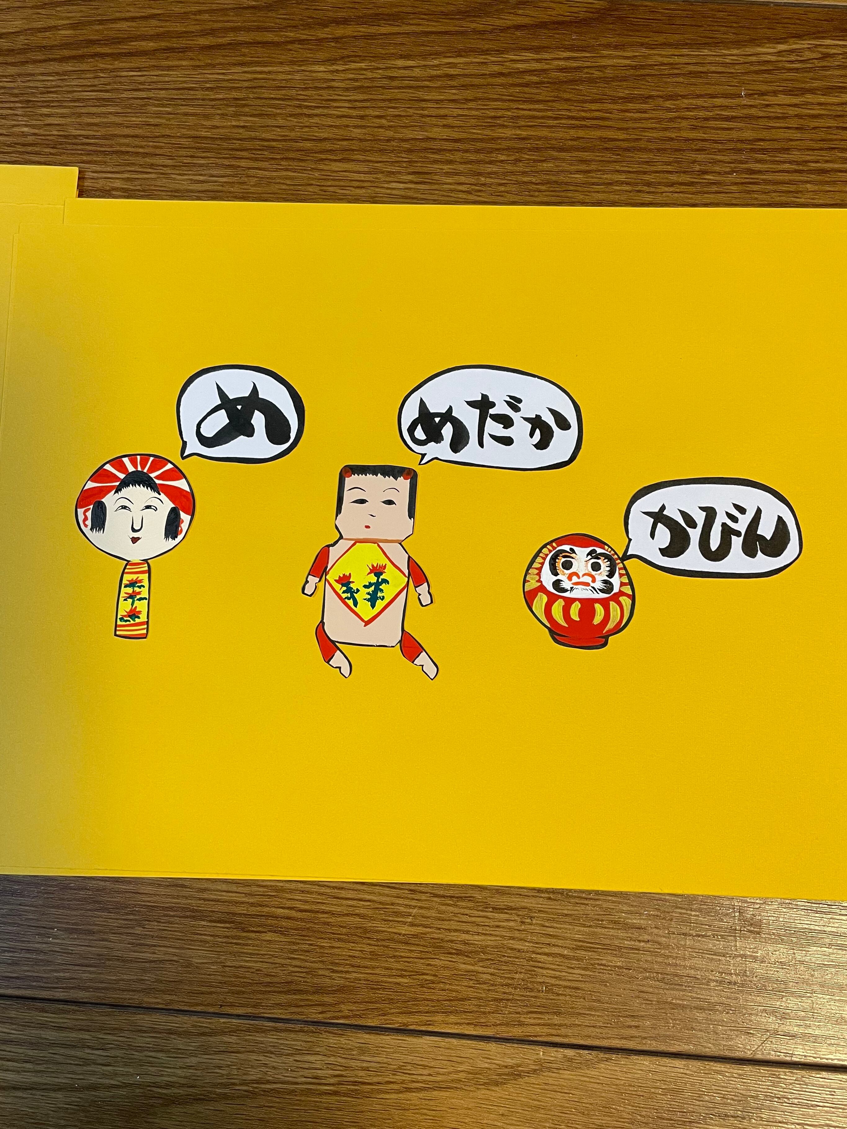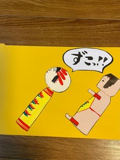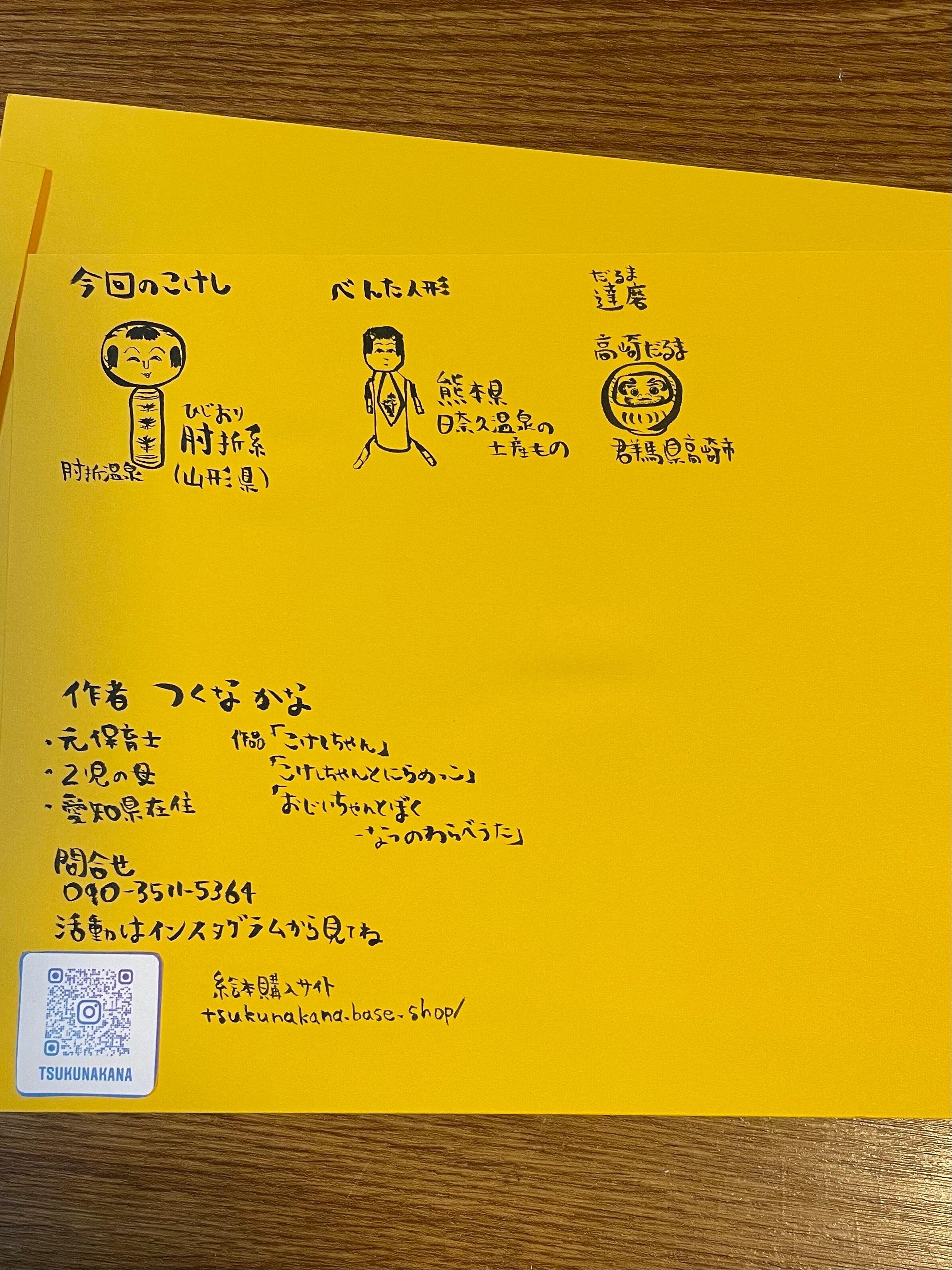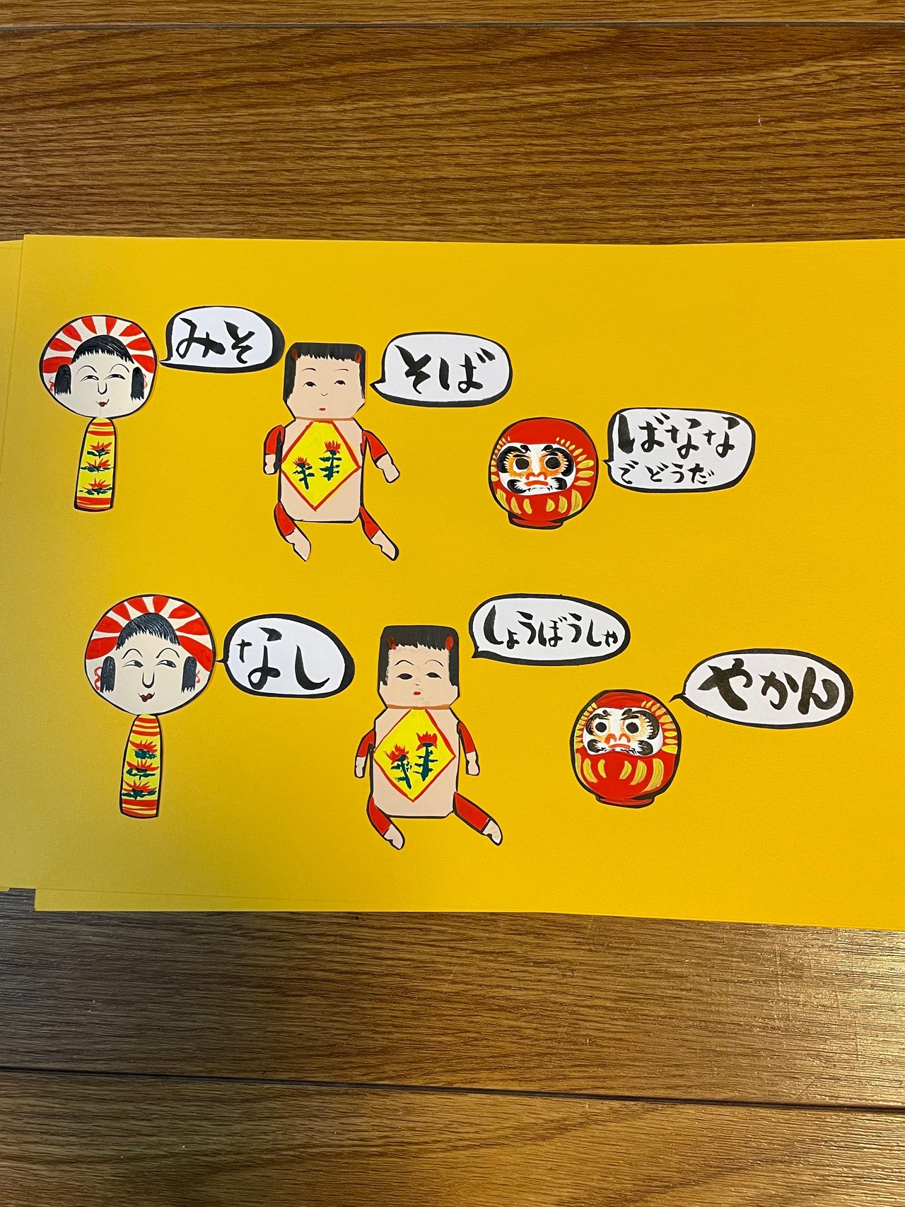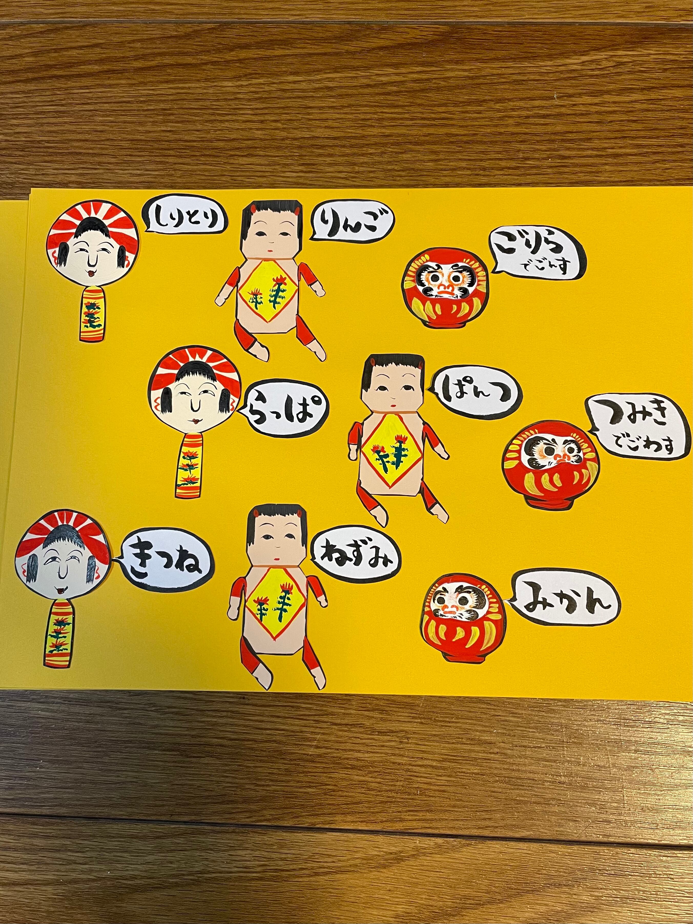 こけしちゃんシリーズ3作目で、今回はこけしちゃんの他に「べんた人形」「だるま」と一緒にしりとりをするお話。