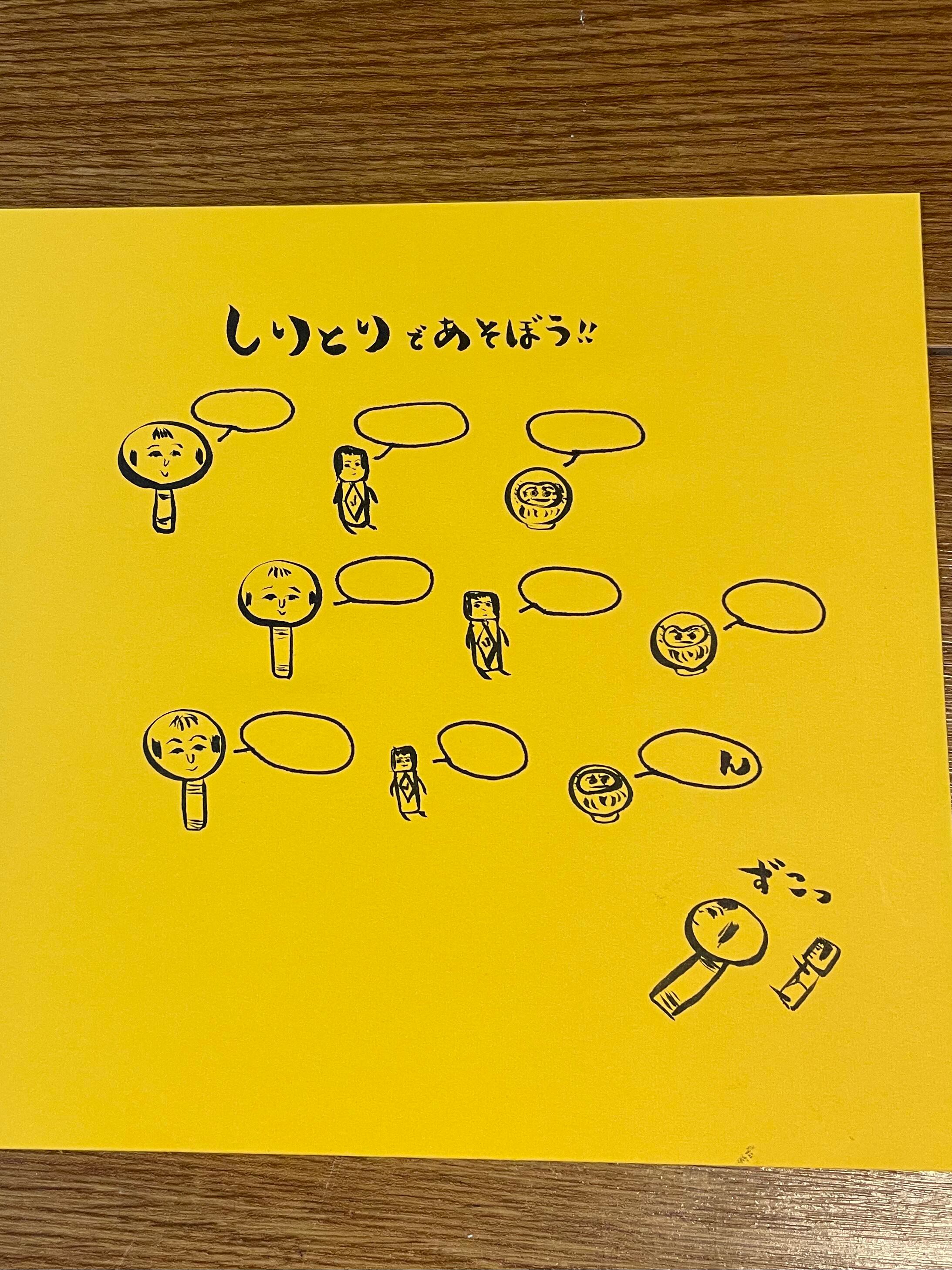 普通しりとりって、「ん」ってならないようにする遊びなんだけどね。「ん」を楽しむのです。